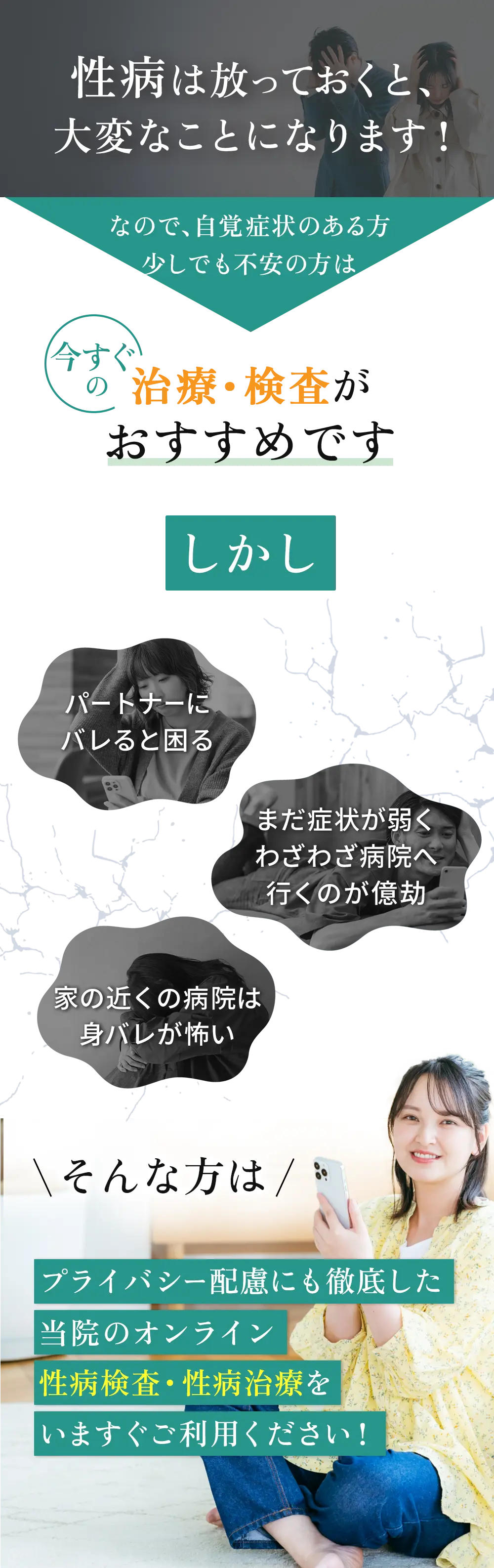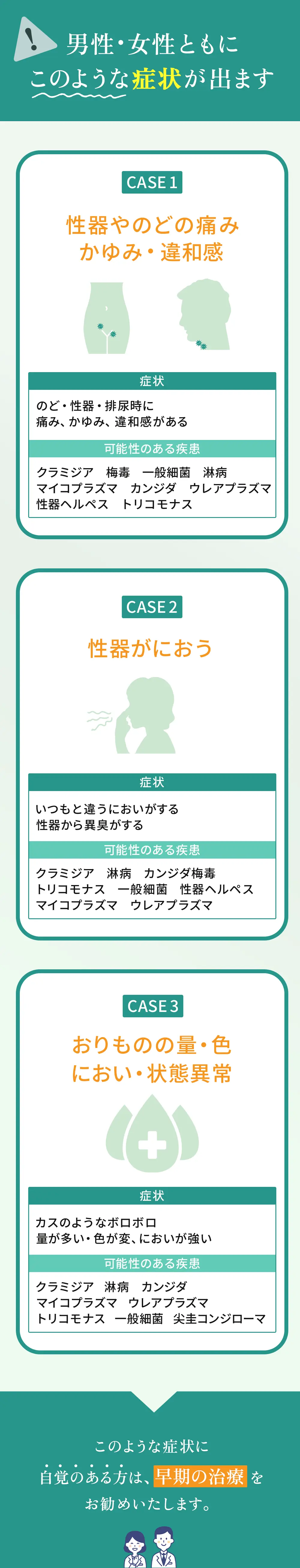 性感染症の種類や症状によって異なりますので、詳細は診察の際に医師にご質問ください。